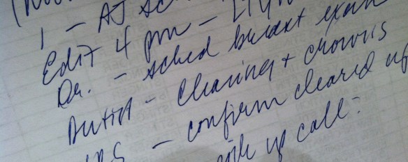 Part of my to do list today (not that you can read my handwriting):